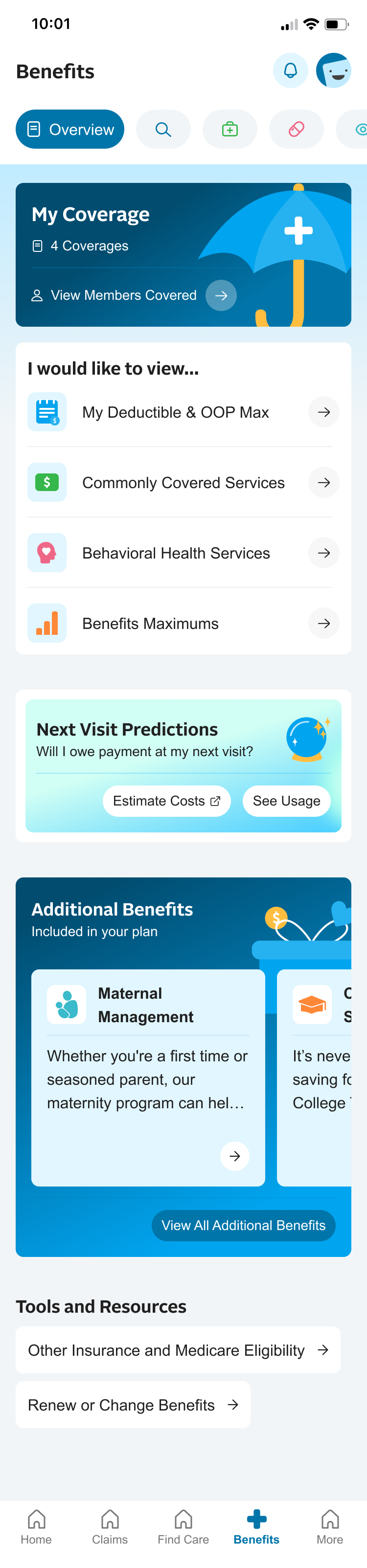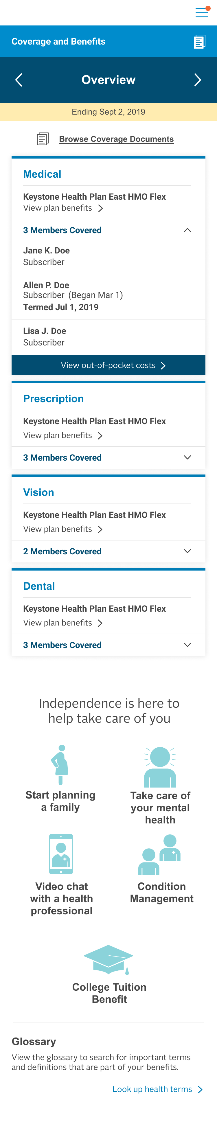 Overview page only shows members covered. Members want to get to coverage information faster.